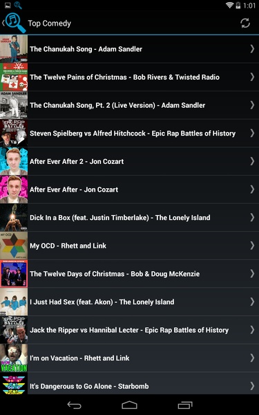 TinyTunes ist eine App mit der man Hunderttausende Songs die auf sieben Servern verteilt liegen direkt mit seinem Android anhören kann. Dazu ist nichts weiter notwendig außer einer Internetverbindung, also 3G oder WLAN.TinyTunes funktioniert ganz einfach und effektiv: Man gibt einfach den Namen des Künstlers, an dem man interessiert ist, an, nach wenigen Sekunden sieht man alle Resultate. Von dort aus kann man einzelne Songs in die Warteschlange einfügen oder eine neue Playlist erstellen.Mit TinyTunes kann man nicht nur nach Musik suchen, sondern sich auch die Musik anhören die aktuell am beliebtesten ist. Beispielsweise stehen die Top 100 von iTunes zur Auswahl, aber auch die beliebtesten Songs bestimmter Genres, falls man neue Musik entdecken möchte.Die Musik kann man entweder auf sein Android herunterladen oder direkt als Stream übers Internet beziehen. Der Download ist recht schnell, die meisten Songs hat man in weniger als 20 Sekunden heruntergeladen.TinyTunes ist eine ausgezeichnete App zum Anhören von Musik. Eine riesige Auswahl steht zur Verfügung die man auch ohne etwas herunterzuladen anhören kann. Zudem ist die App mit weniger als 2 MB recht leichtgewichtig.