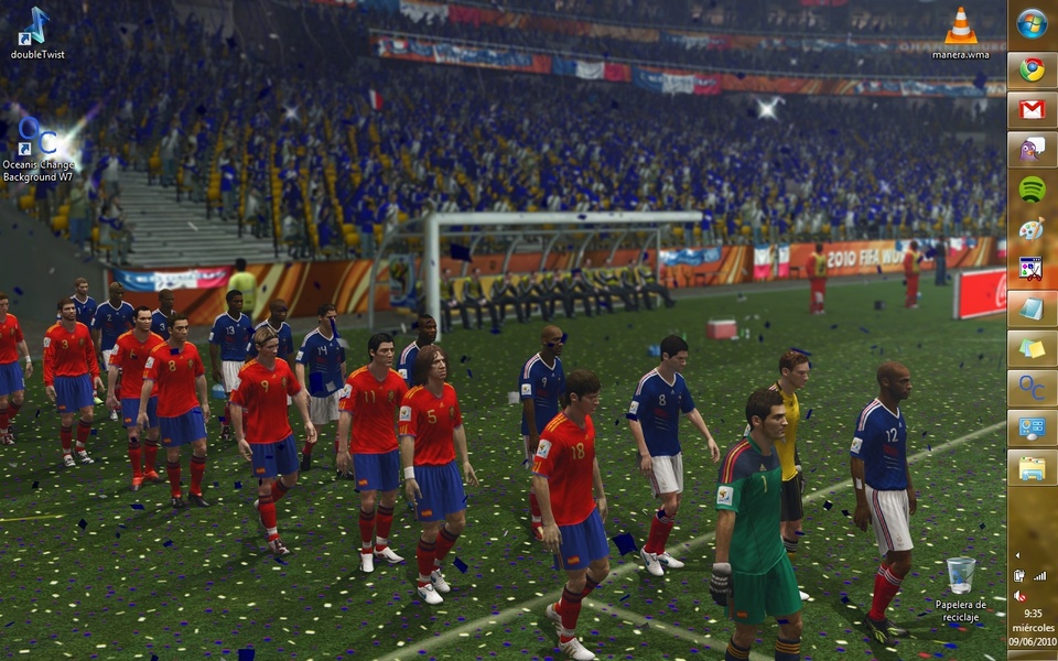 Die Weltmeisterschaft 2010 in Südafrika steht vor der Tür, wie immer hat EA ein neues Spiel dazu veröffentlicht.EA SPORTS World Cup Windows 7 Theme ist das passende Programm mit dem der Desktop optisch auf das Fußball-Event schlechthin vorbereitet wird.Im Theme sind 10 verschiedene Hintergrundbilder enthalten. Man sieht darin die Teams aus Spanien, Frankreich, den Niederlanden, die Fußballstadien, etc.Casillas, Robben, Henry, Xavi, De Rossi, Iniesta,… Sie alle sind auf dem Desktop zu sehen.Wer auf Fußball steht und sich auf die anstehende Weltmeisterschaft freut, für den ist EA SPORTS World Cup Windows 7 Theme das perfekte Theme.